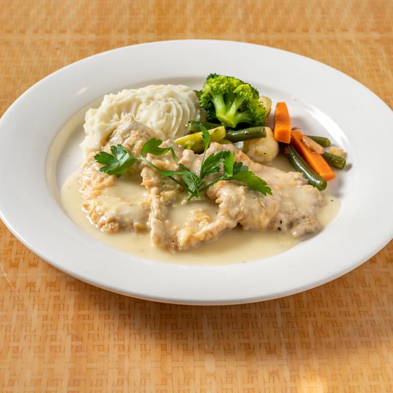 Served with vegetables & mashed potatoes