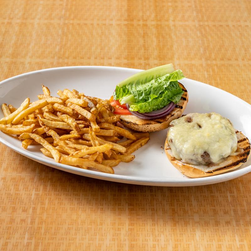Brioche bun, lettuce, tomato, Swiss cheese, onion, served w/French fries